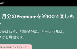 アプリ2019年06月09日(Sun)【終了】【6月30日まで】Spotify Premiumがたった100円で3ヶ月分楽しめる音楽ストリーミングサービス「Spotify」では,3ヶ月分のPremiumを100円で利用できるキャンペーンを行っています。 ただし,対象は過去にPremiumサービスを利用したことがない人,さらに2019年6月30日までの申し込みです。要するに,新規Premium会員に向けたキャンペーンということになります。 Spotifyってどんな感じ? Spotifyは,音楽ストリーミングサービスの1つです。日本国内の他のサービスといえば,代表的なものでApple MUSICやLINE MUSIC,Prime Musicなどがあります。 Spotifyの特徴としては,通常の音楽配信サービスにはない,Freeプランです。数曲に1回の広告,シャッフル再生といった条件を我慢できれば無料で楽しむこともできます。 FREEPREMIUM月額料金¥0¥980配信曲数4000万曲以上4000万曲以上広告ありなしオフライン再生不可可曲のスキップ制限あり無制限オンデマンド再生不可可音質24Kbps,96Kbps,160Kbps24Kbps,96Kbps,160Kbps,320Kbps 高音質,オフライン再生にこだわりのある人は,PREMIUMは必須という感じですね。配信曲数自体はどちらも変わりはないので,手頃に幅広い音楽を聴きたいという人にはFREEはピッタリかもしれません。 PREMIUMに登録してみた WEBサイト,アプリから登録ができます。WEBで登録した場合,スマホで利用したいときはログインをする必要があるので,アプリで登録したほうが手っ取り早いです。 アプリをインストールしたら,新規登録(無料)ボタンを押して,案内に従ってメールアドレス,パスワード,ニックネーム等を登録します。 そして,登録が完了すると,好きなアーティストを3つ以上選択します。ここで選択したアーティストから,今後Spotify内でおすすめアーティストや曲を自動で紹介してくれます。 このようにトップページが表示されたら,Spotifyの登録は完了です。この時点ではフリープラン会員となるので,次はブラウザからPreimiun会員の登録を行います。(どうやらアプリからはPremiumの登録はできないようです。。。) ページを開いたら,「PREMIUMにアップグレード」をタップします。そして,先程アプリで登録したメールアドレス,パスワードを入力してログインします。 クレジットーカード情報を入力したら,「SPOTIFY PREMIUMを開始」をタップします。これでPremiumへのアップグレードも完了です。後はアプリを開けば,プレミアム会員の機能が自動で使えるようになっています。 キャンペーン終了まで急げー!! PREMIUMプランは通常980円/月と割と高額ですが,キャンペーンを使えばとてもお得です。このキャンペーンでは,3ヶ月分をたった100円で利用できるので,980円×3から100円を引いて2840円も得する計算です。 たった100円ですから,お試し気分で登録してみては!? -